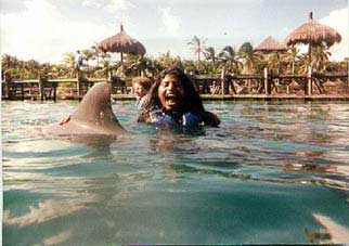 Sandra petting the dolphins at XCaret
