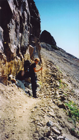 The trail got more treacherous now, as we shimmied along vertical rock walls.