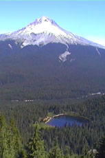 Mt. Hood looms over Mirror Lake, creating a picturesque scene.