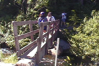 We cross the bridge over Camp Creek, with Pablo leading the way.