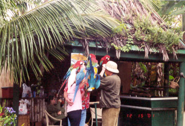 Bud the Birdman of David Letterman fame helps folks pose for photos with his variety of tropical birds.
