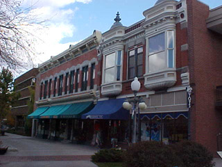 The Pedestrian Mall at Last Chance Gulch features a trolley, a statue of the original "Bullwhacker", a former brothel, and many shops, restaurants, and services.