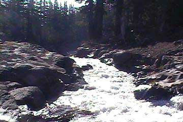 I looked upstream for an easier way to cross, but the creek was pounding.