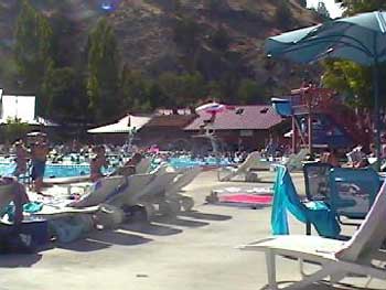 We found Brian and the kids lounging by the large pool, naturally heated by the mineral hot springs. The pool featured a water slide and fun for all. The pool area was like a sauna, and I had to make haste.