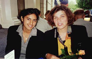 Kicki and Anna kick back over a cappucino at a cafe.