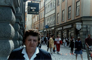 Mormor (Grandmother) shopping in old town, where many fine shops reside. There is tax free shopping for tourists here, and throughout Sweden.
