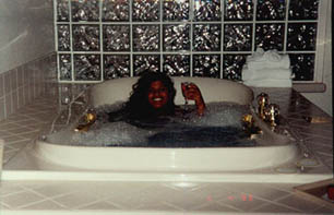 Sandra enjoying the Jacuzzi in our room.