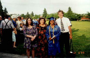 Sandra and I with our mothers on Graduation Night.